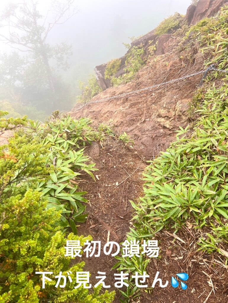 ・2時に起床し,3時頃に出発。天候は霧雨。1時間程度歩いて,登山道入口の「一の鳥居」に到着。庚申山荘までは,緩やかな傾斜 庚申山までは若干の急登。いよいよ,庚申山から主稜線上の鋸山までの「鋸山十一峰」と呼ばれる梯子や鎖場が連続するピークを越えて皇海山へ向かう。「鋸山十一峰」は、庚申山、御岳山、駒掛山、渓雲山、地蔵岳、薬師岳、白山、蔵王岳、熊野岳、剣ノ山、鋸山の11峰。鎖もロープも岩も,滑るので慎重に進みました。アンカーの状態や鎖・ロープの劣化度合いが若干怪しい箇所があるので,あくまで補助的な利用とし,自身の体は自身の手と足で支え,全体重をかけないことに専念。鋸山から急傾斜を下り,不動沢のコルを経由し,皇海山に登頂。ここまで6時間30分・・・普通の山なら下山している時間。ちょい休憩して,折り返して鋸山に戻り,六林班峠を目指す。鋸山を再び登るのは,精神的にも肉体的にも・・・。六林班峠から女山までは,藪漕ぎエリア。笹の背丈が,かなり高く足元の段差や倒木に足を取られる場面も多々ありました。六林班峠から庚申山荘までは,永遠と思えるトラバース地獄を歩き,何度も沢を渡ります。庚申山荘に到着し,登って来た時は暗かったため、また違う景色を楽しみながら下山しました。17時30分頃、テント場に到着し,片付けと準備をし、21時には就寝。(永井)
