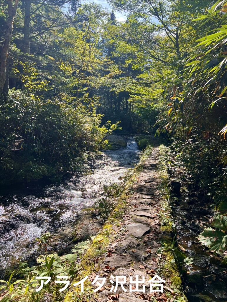 ■静岡5:00=🚙=8:30聖平登山口8:50…8:57小三郎小屋跡…9:18アライタ沢出合…10:05岩菅山中間点…10:40ノッキリ10:50…11:23岩菅山11:42…12:06ノッキリ…12:35岩菅山中間点…13:10アライタ沢出合…13:30小三郎小屋跡…13:38聖平登山口14:00=🚙=14:30楓の湯(湯田中駅)15:15=🚙=19:30静岡