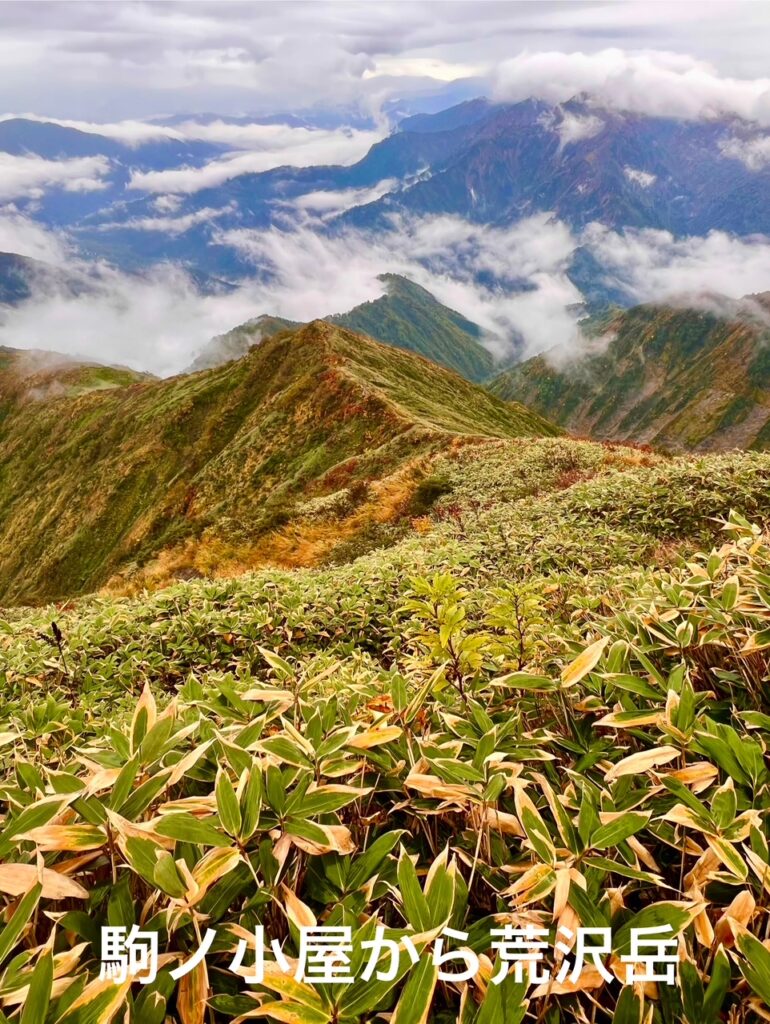 ★本来は裏越後三山の周回縦走を目指していたのですが、12日の天候が悪そうなので荒沢岳と越後駒ケ岳2座ピストンンのプランBに変更。ところが11日の予報の方が悪くなったので11日越後駒ケ岳、12日荒沢岳のプランCに変更。なんとか山頂までは霧雨が降ったり止んだりだったのが、下山の駒ノ小屋休憩中に本降りに。冷えた身体に下山後の温泉のお湯が沁みました。三連休中の百名山なのであいにくの天候でも登山者が多かったです。小屋のおじさんは15日に小屋閉めで下山するとのこと。泊まってみたい小屋でした。(苫米地)