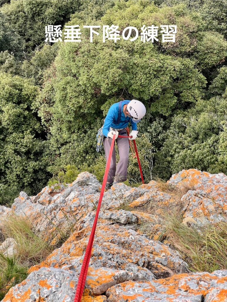 ★11月の月例岩登り演習で、苫米地さんに下見にきてもらいました。1日でできるメニューの確認をしてもらいました。天候は青空。3点のロープワーク、器具あり懸垂下降の安全確認、ブルージックよる登り返し、コンテ、トップロープによる岩登り練習等で4時間から5時間のメニューになります。私の方はクライミングシューズの底がとうとう剥がれしまい。買いなおす必要となりました。(根田)